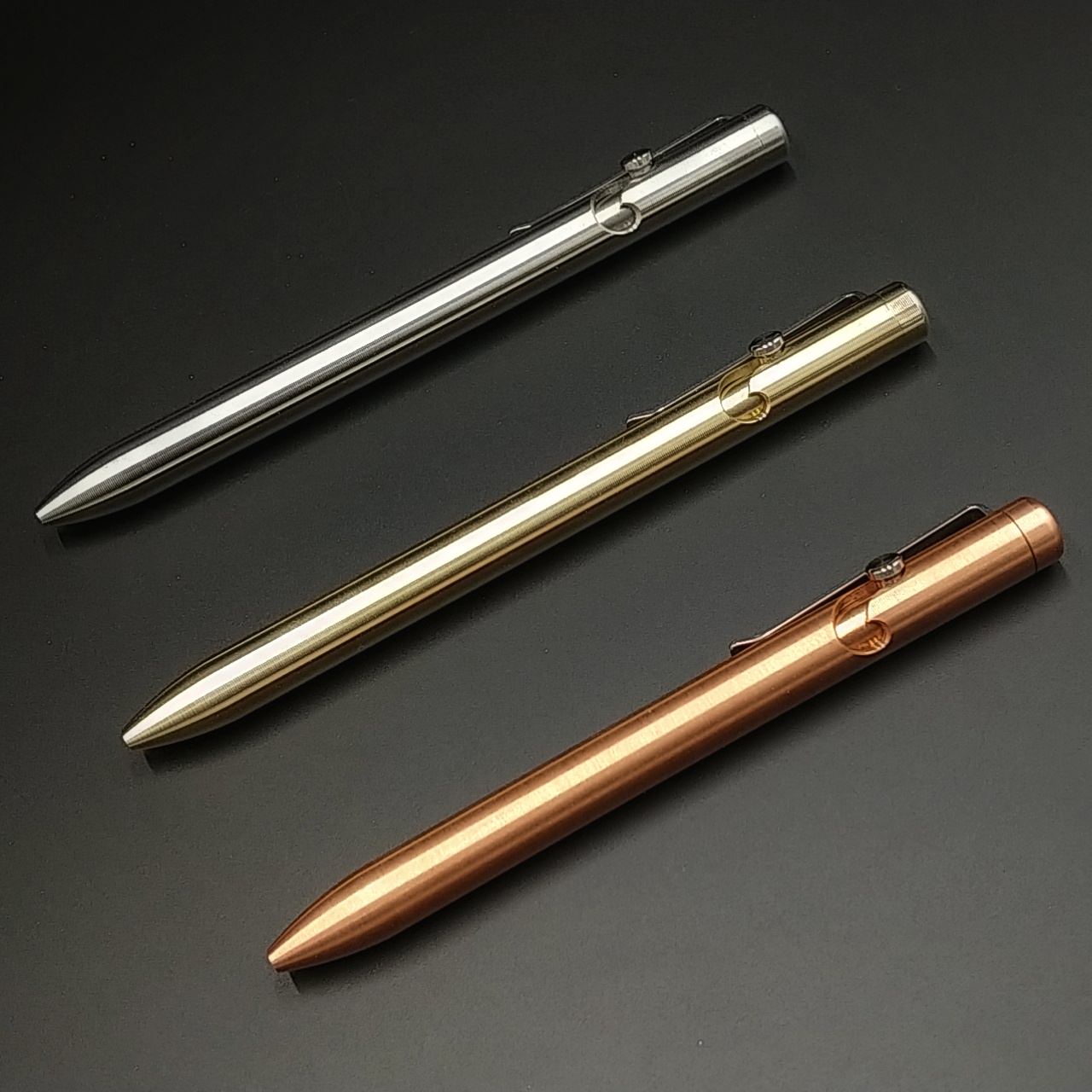 볼트 액션 펜은 금속 부품으로 만들어져 있으며, 일반적인 개폐식 펜과 달리 플라스틱 부품이나 부서지기 쉬운 몸체가 없습니다. 볼트 액션 펜은 고장 발생 가능성이 적고 안정적입니다. 볼트 액션 펜은 내구성과 안정성이 높아 거친 사용 환경에 적합합니다.