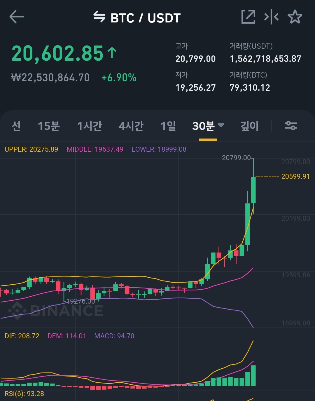 최근 몇 번이나 19850 근처에서 고꾸라져서 올해 안에 2만불 도달이 힘들지도 모르겠다고 생각했어요. 그런데 오늘 예상치 못한 타이밍에 비트코인이 2만 달러를 돌파했네요.