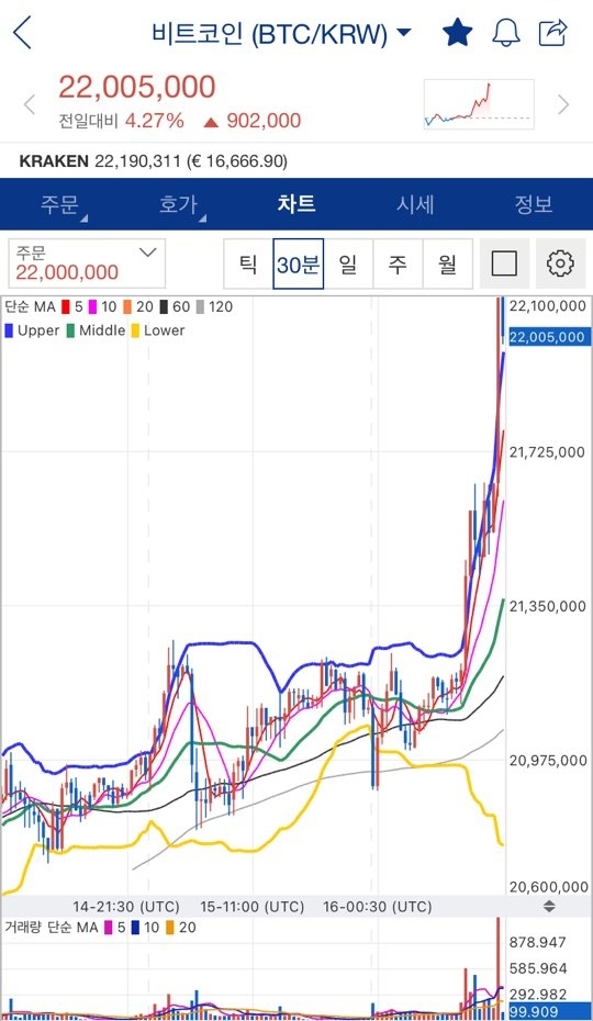 업빗 비트코인 가격은 2200만원을 넘었습니다.