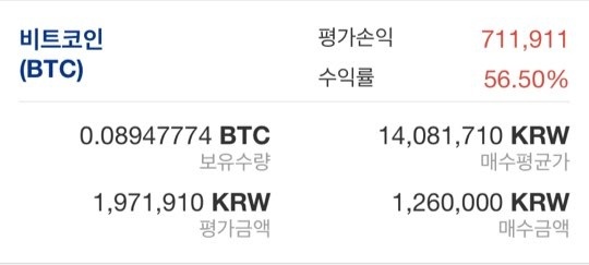 매일 비트코인 만 원씩 사는 제 계정의 수익률은 56%를 넘었네요.