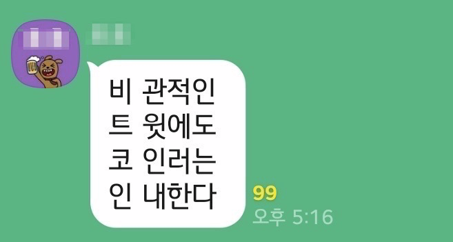 위 작품은 세로로 읽어도 똑같은 시가 되게끔 지으셨네요. 창의성!